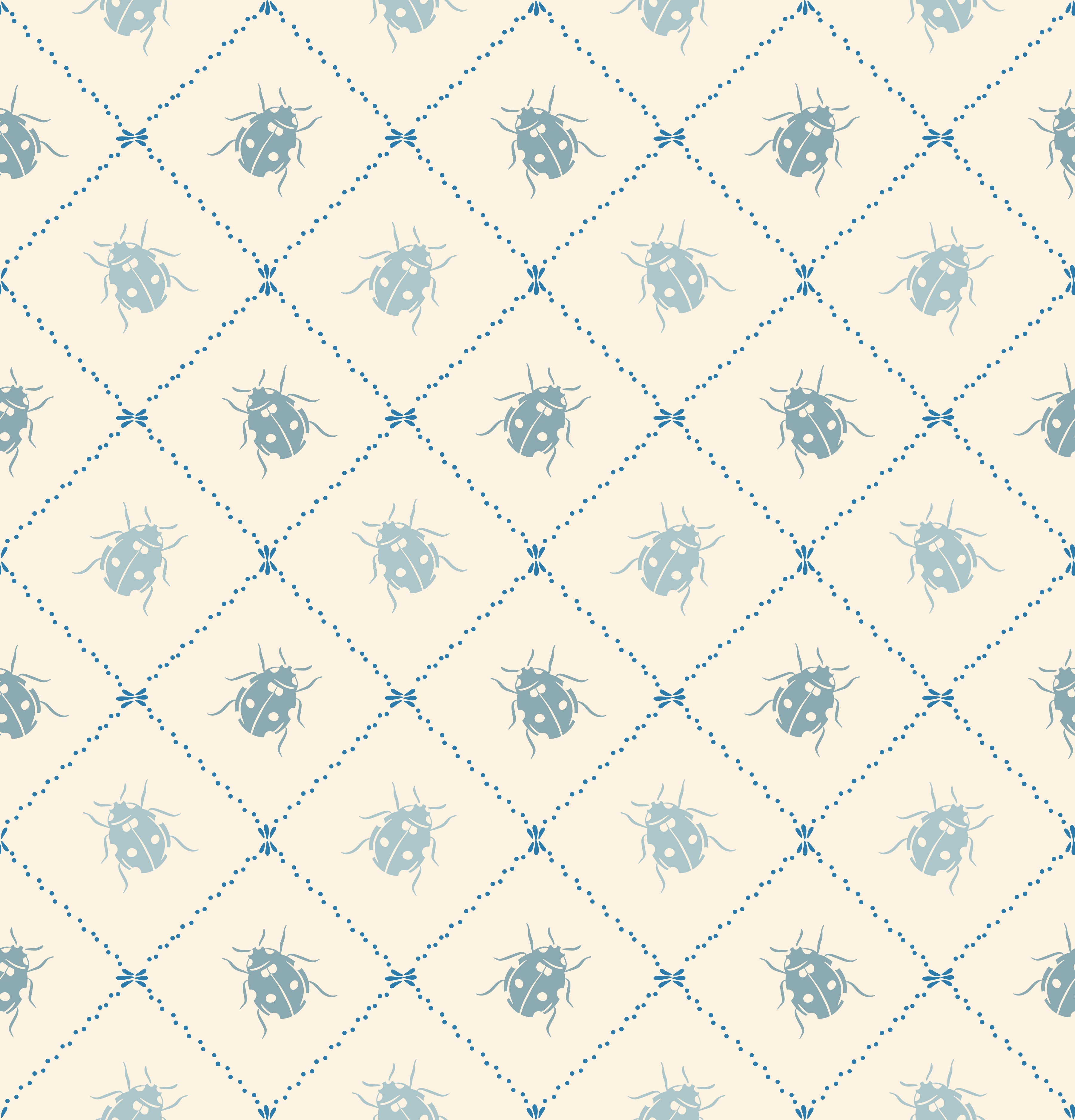 Preppy Gingham with Dots - Delft Blue and Cream Wallpaper