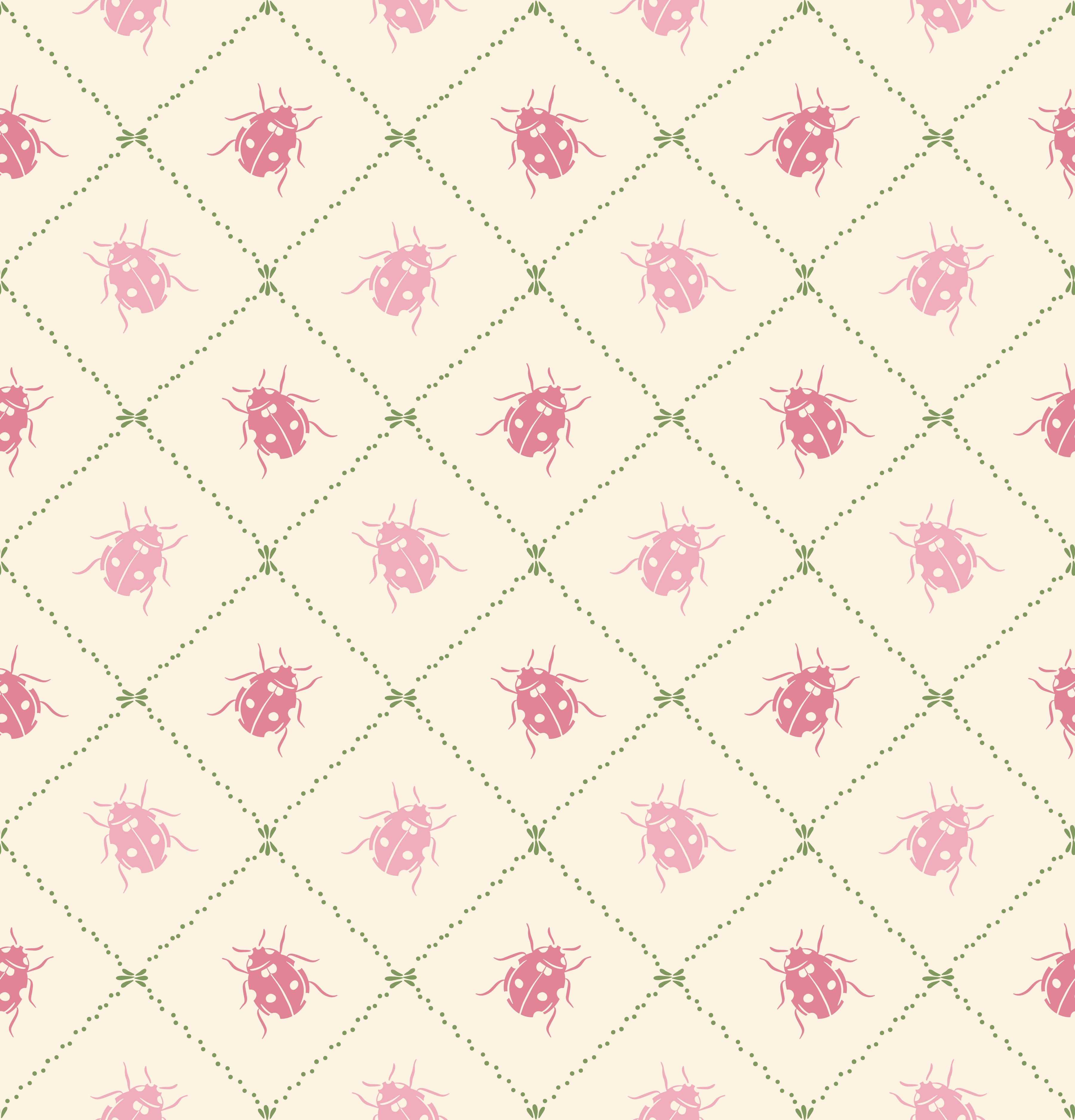 Preppy Gingham with Dots - Green, Pink and Cream Wallpaper