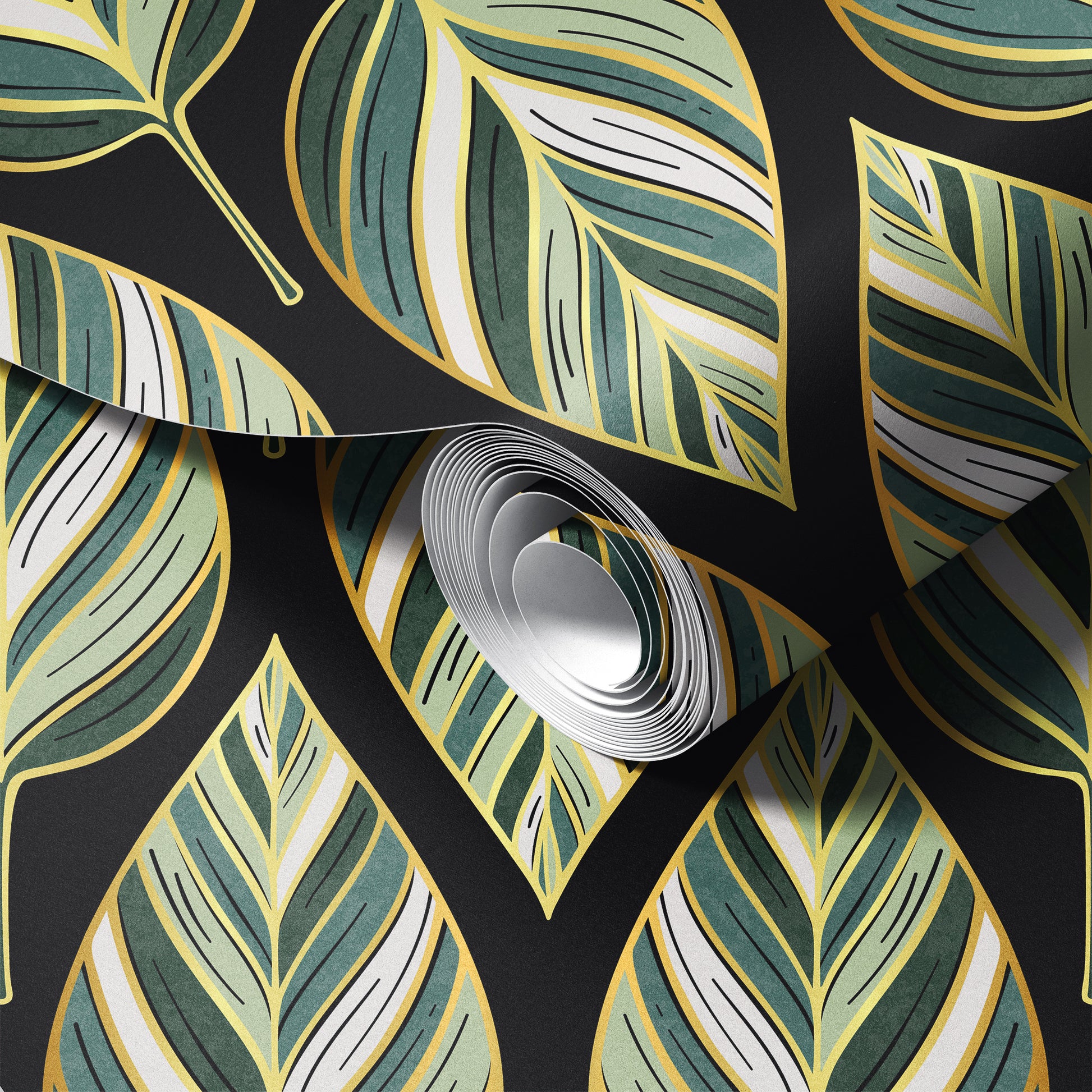 Art Deco Hosta Leaves Wallpaper