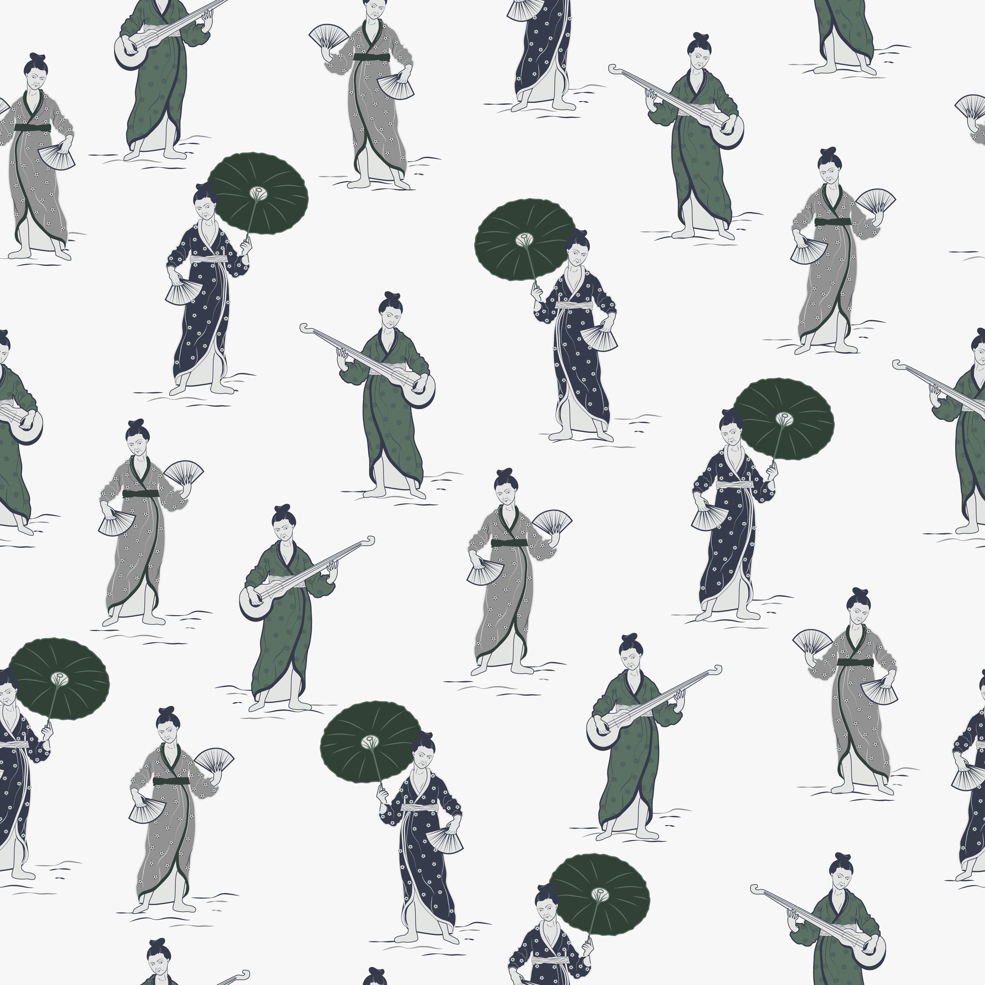 Chinoiserie Women Grey Wallpaper