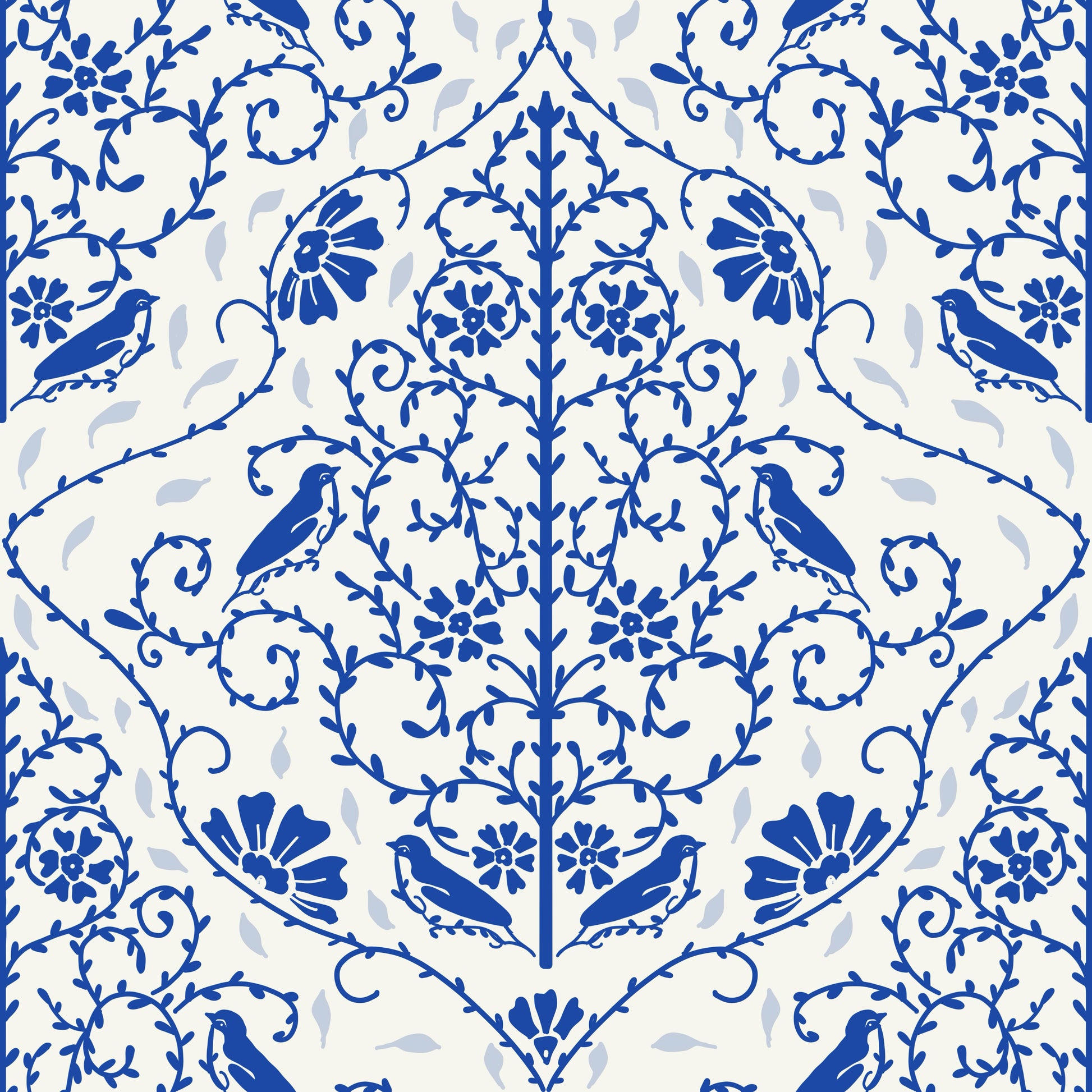 Classic French Blue Florals Wallpaper