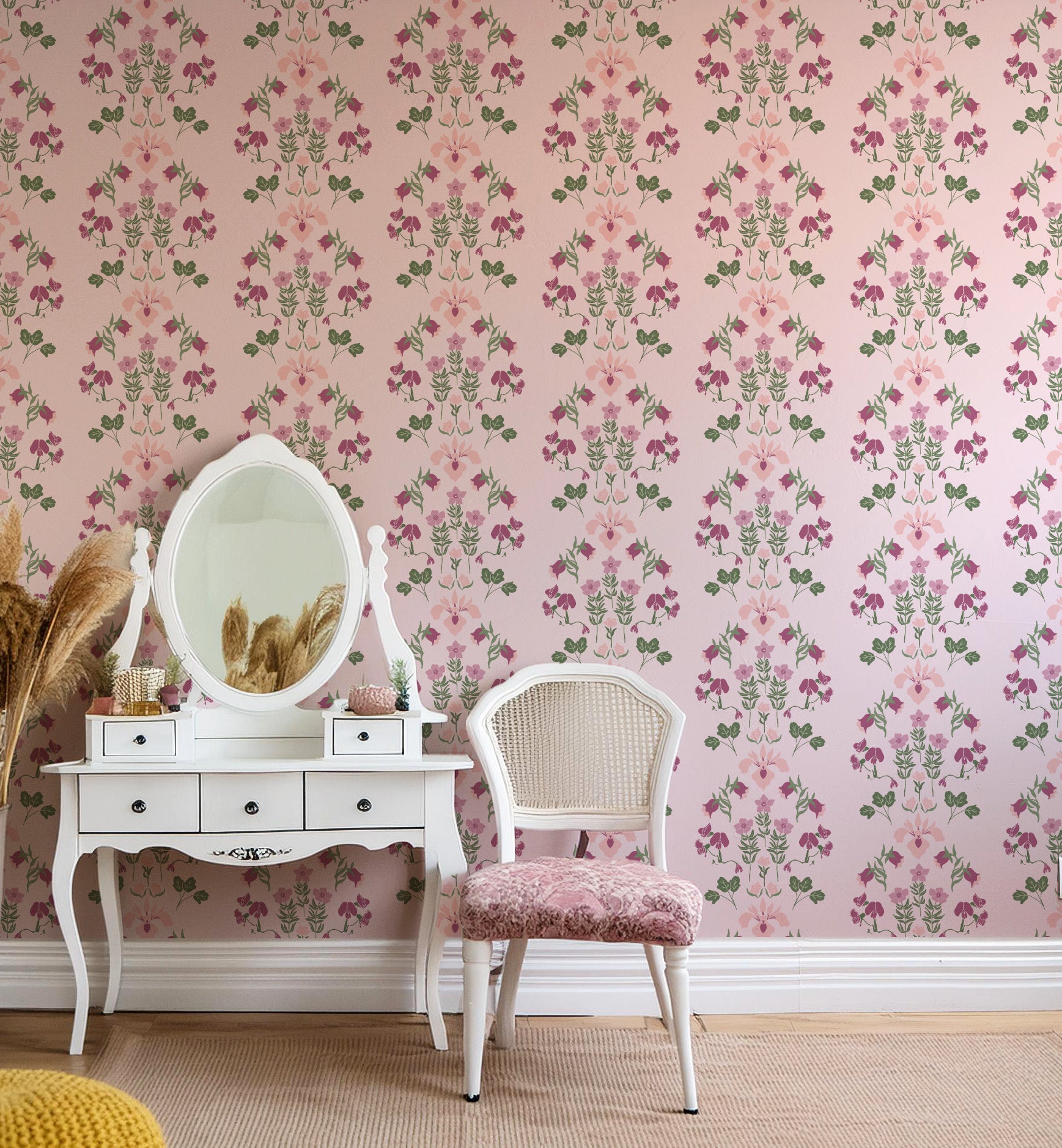 Floral Medallion Stripes Wallpaper