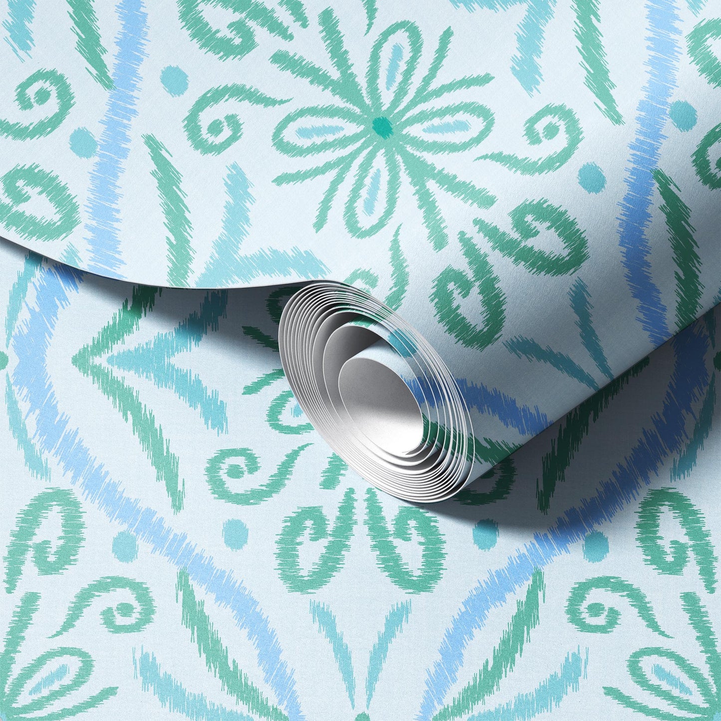 Ikat Aqua Green Wallpaper