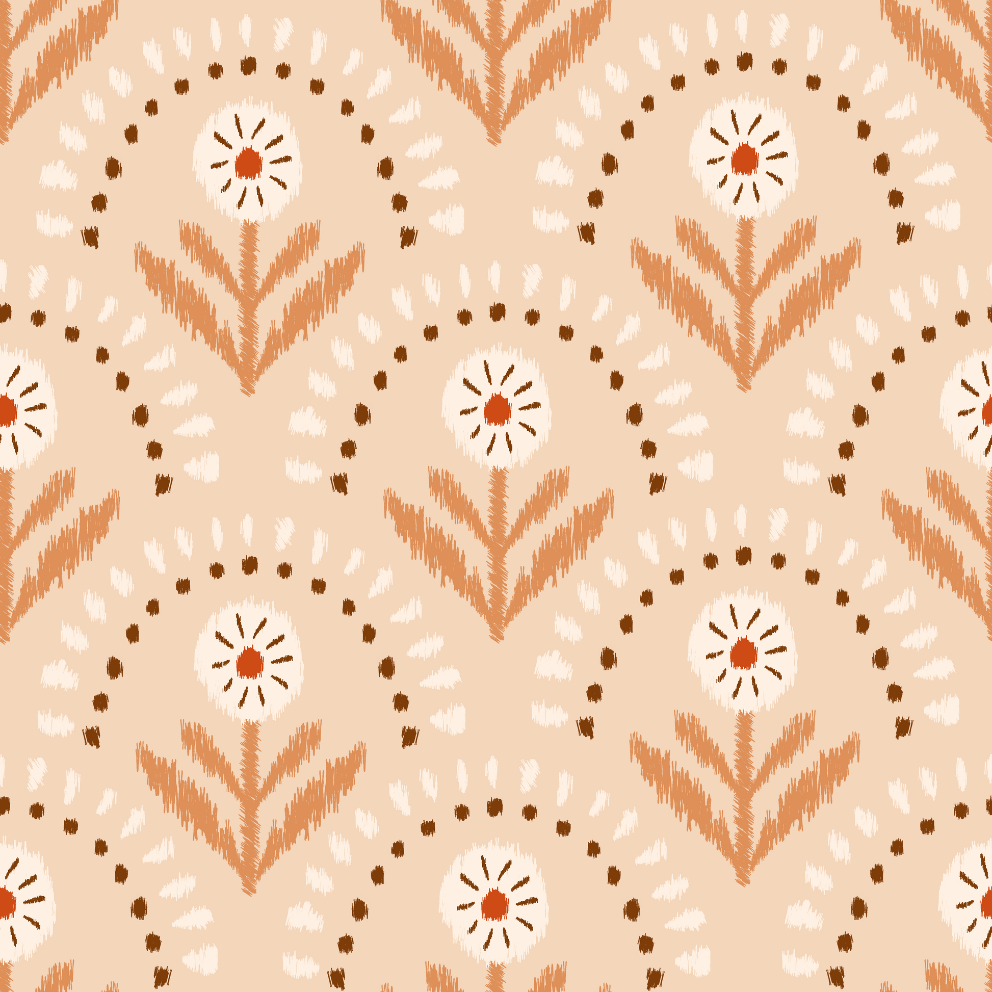 Ikat Boho Flowers Wallpaper