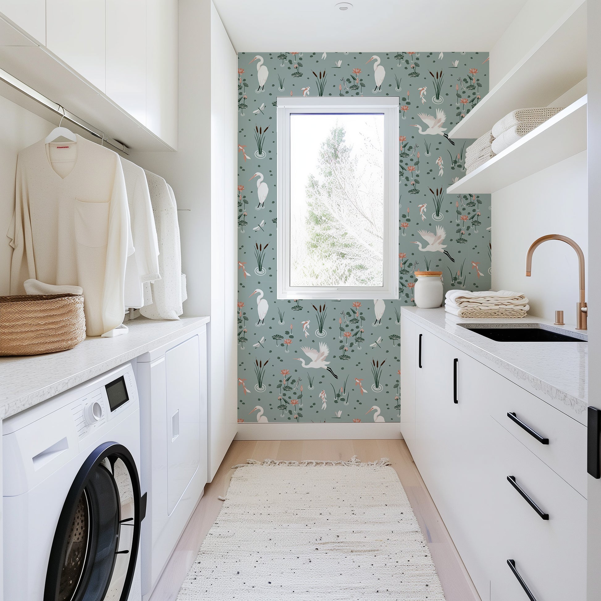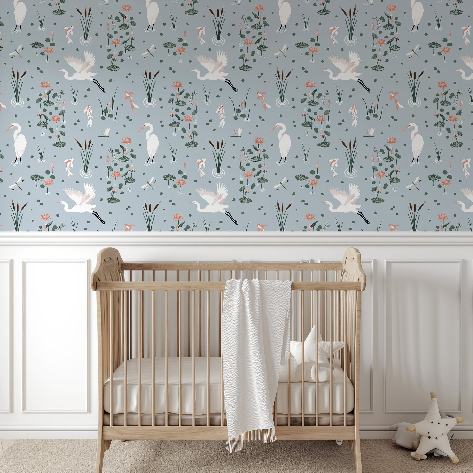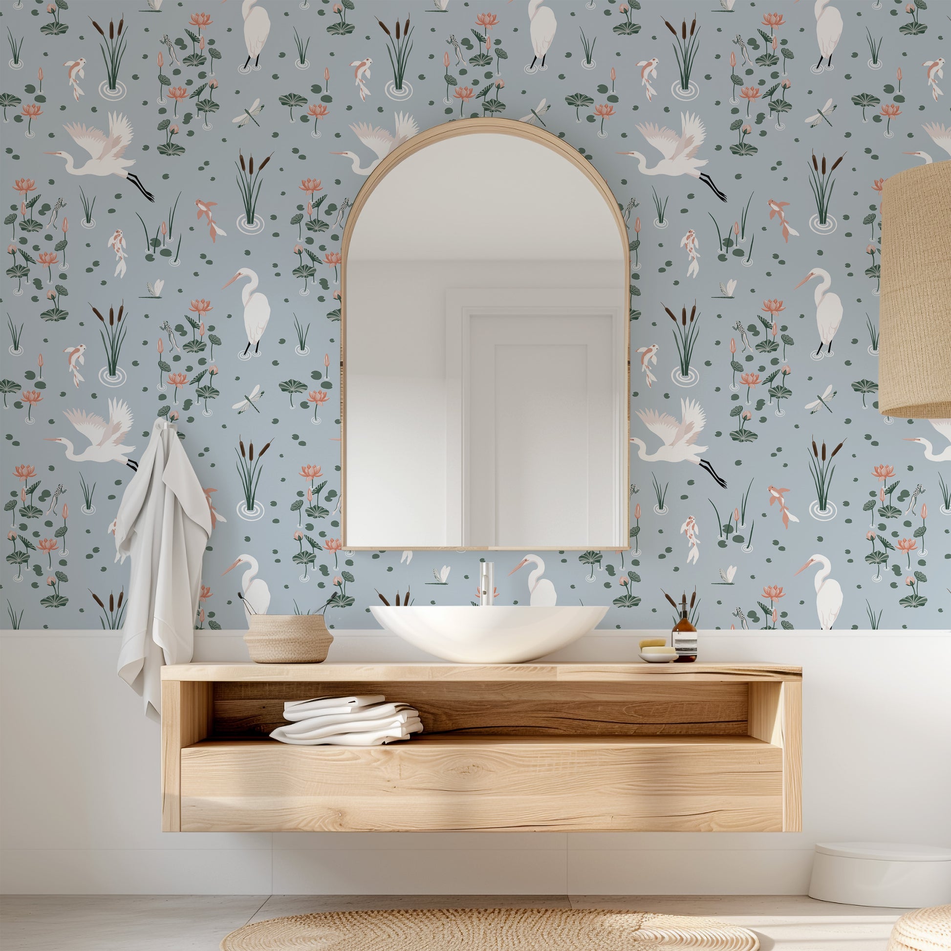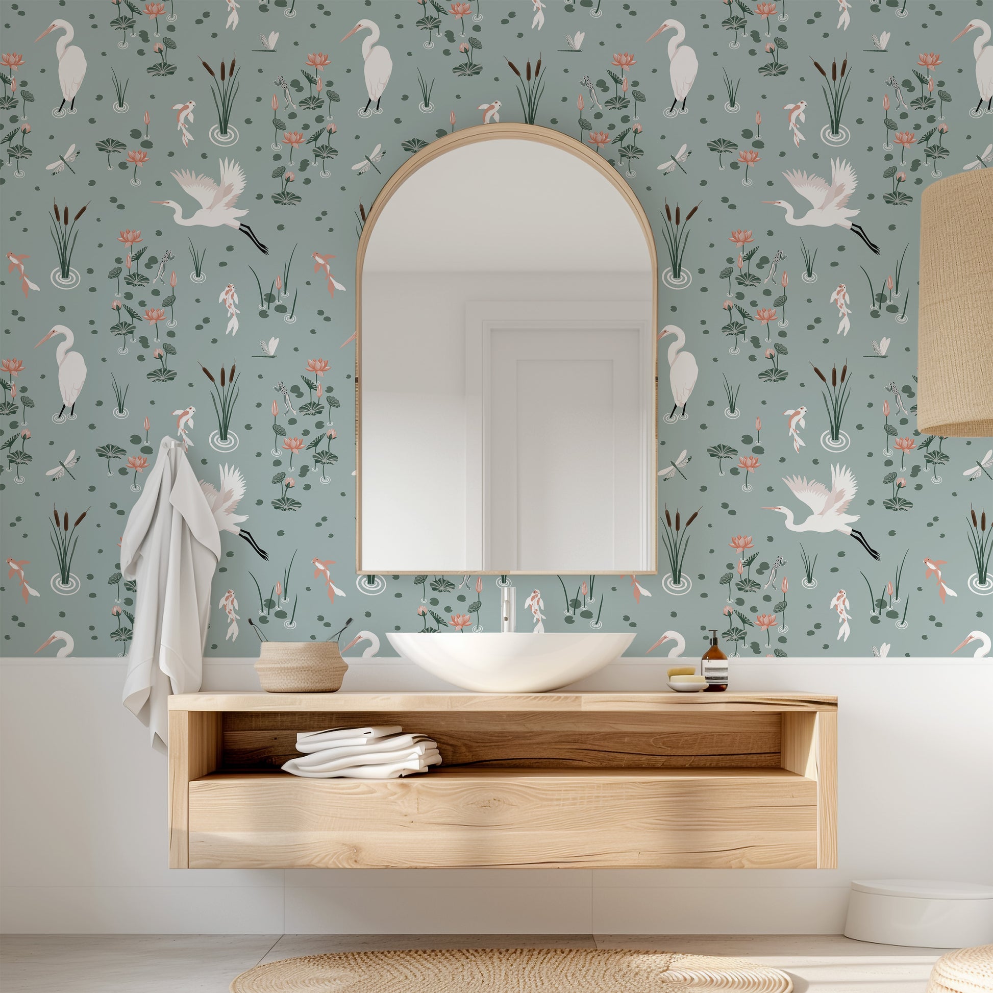 White Heron Koi Pond Wallpaper